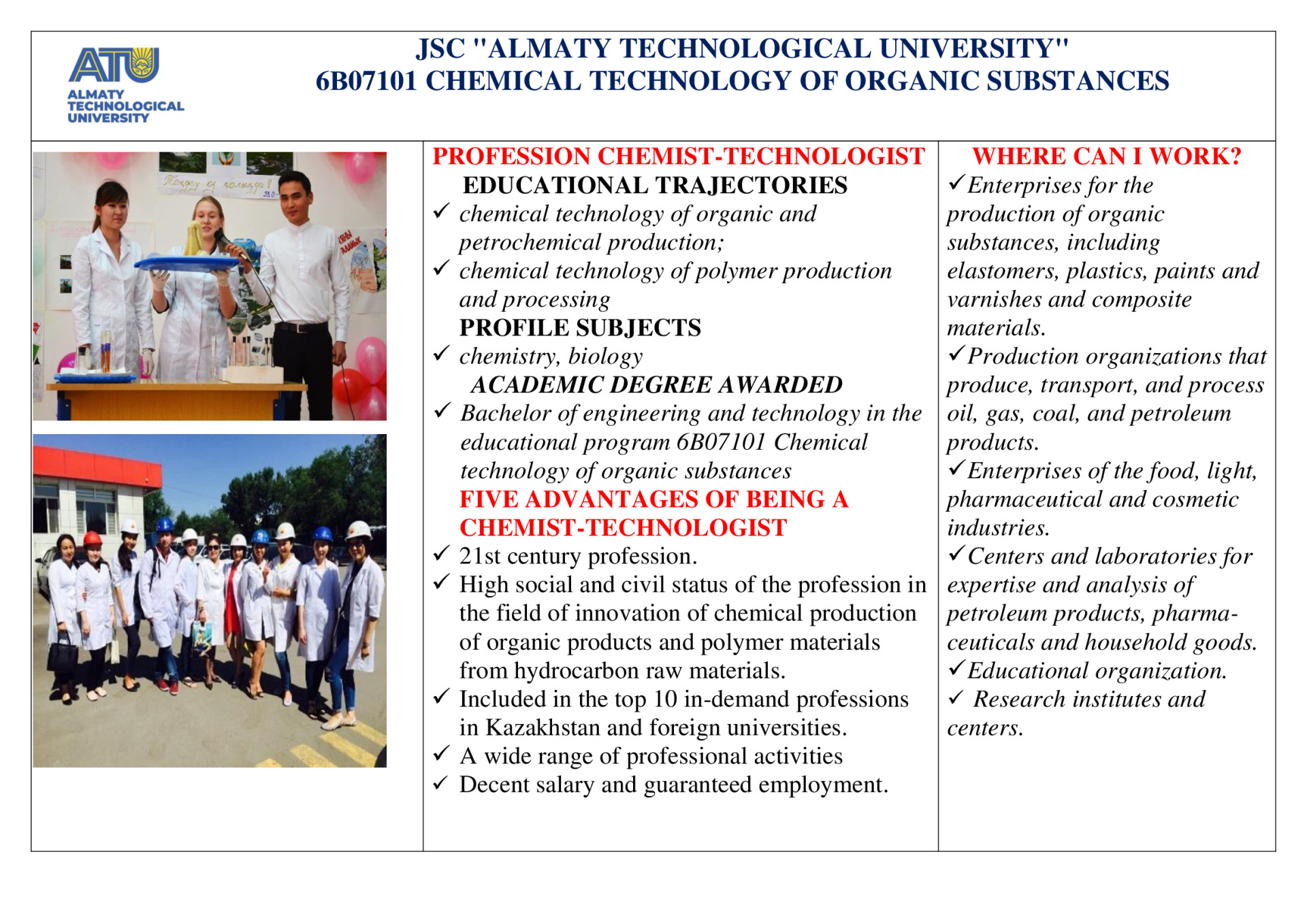The Department of «Chemical and pharmaceutical manufacturing technologies» (CaPMT) trains specialists in the following educational programs: