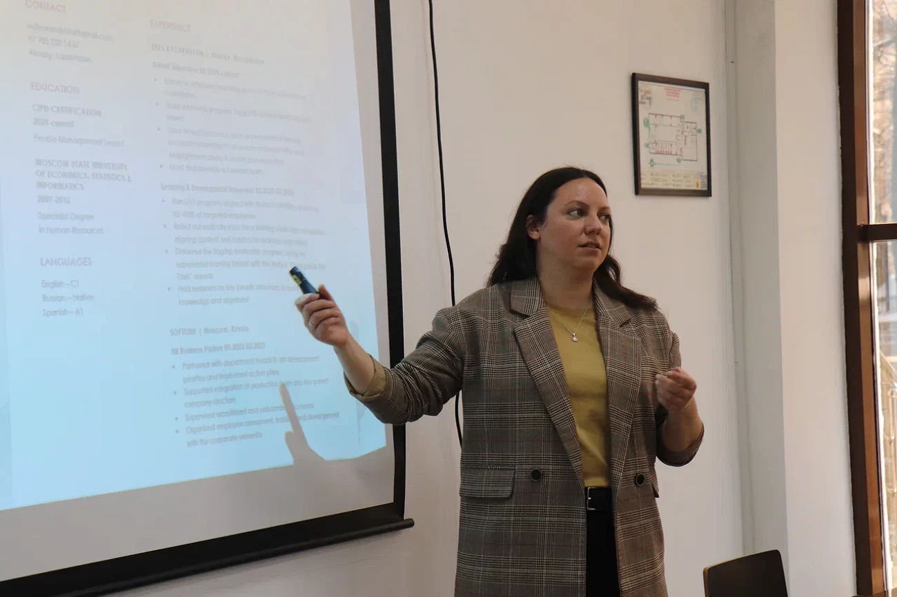 The speakers were Valeria Volkova, Head of the Talent Management Department at EFES Kazakhstan, and Zhanar Medeubayeva, Director of the Department of Human Resource Development at ATU.