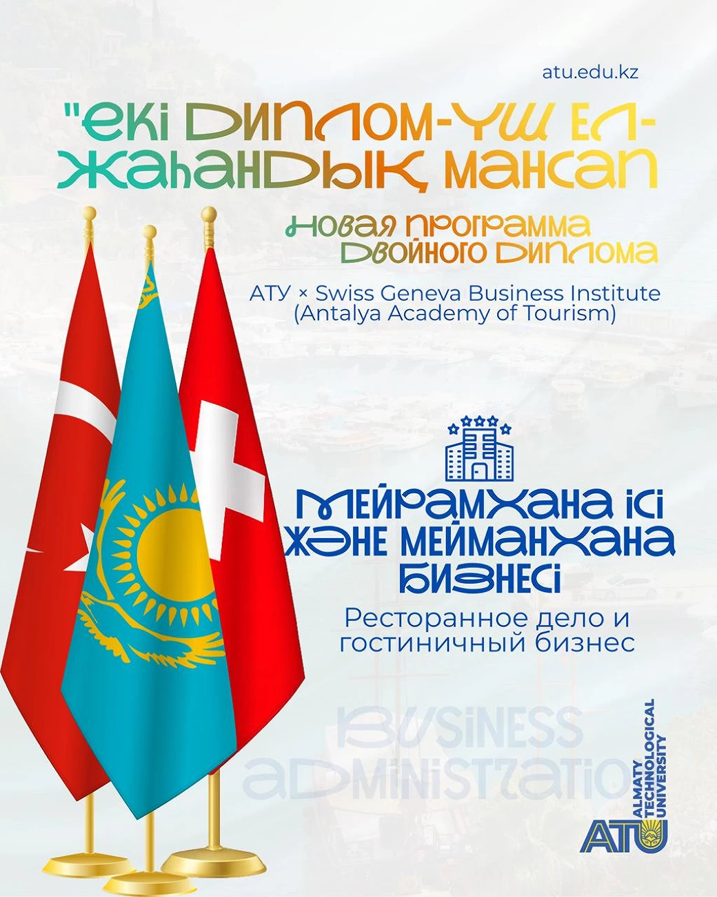 ATU has opened a new double-degree program in cooperation with the International Campus of the Swiss Geneva Business Institute based on the Antalya Academy of Tourism (AAT/SGBI) for students of the Faculty of Economics and Business studying in the field of Restaurant and Hotel Business.