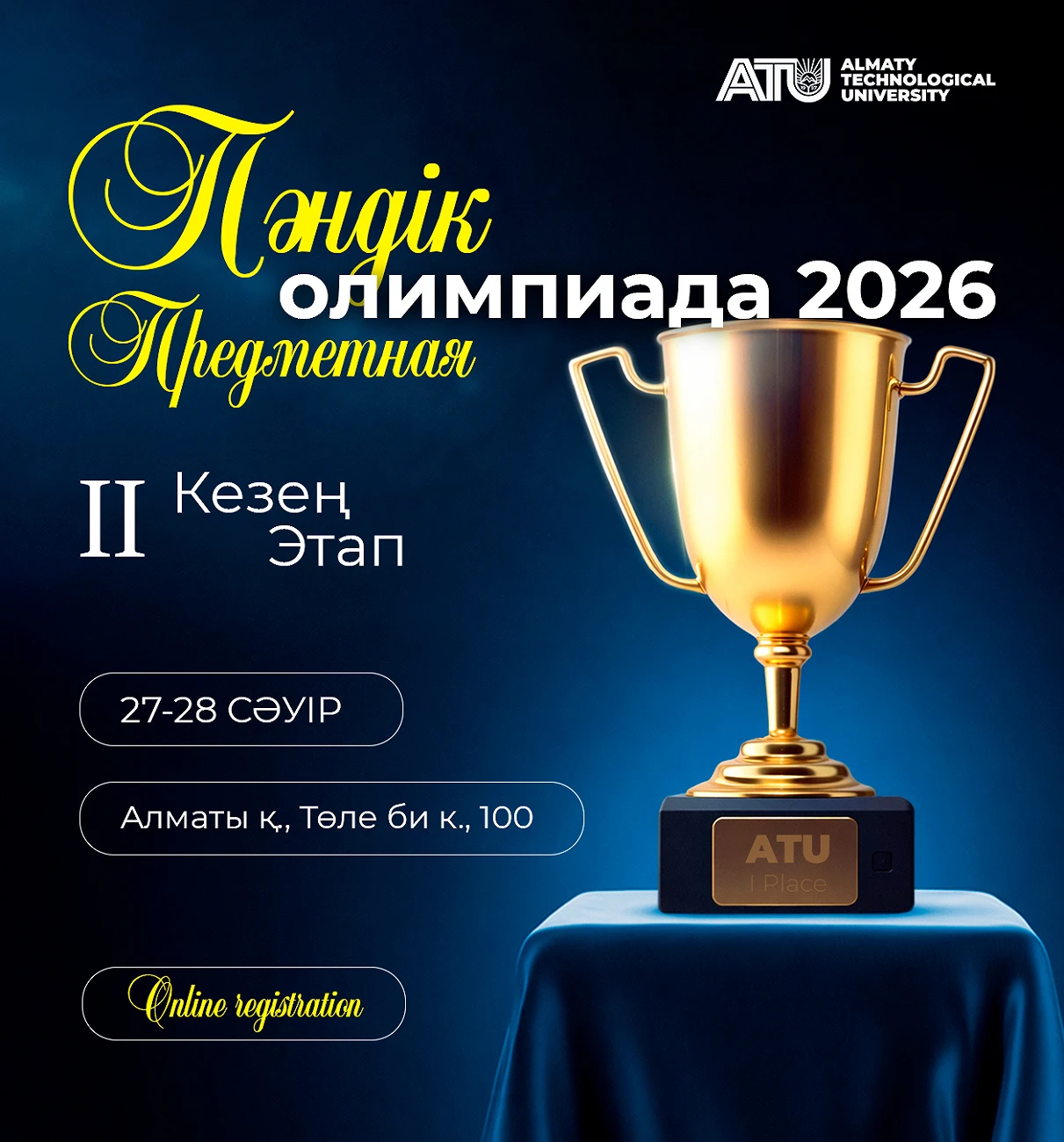 АО «Алматинский технологический университет» приглашает студентов принять участие в одном из ключевых академических событий года — II этапе Республиканской предметной олимпиады!