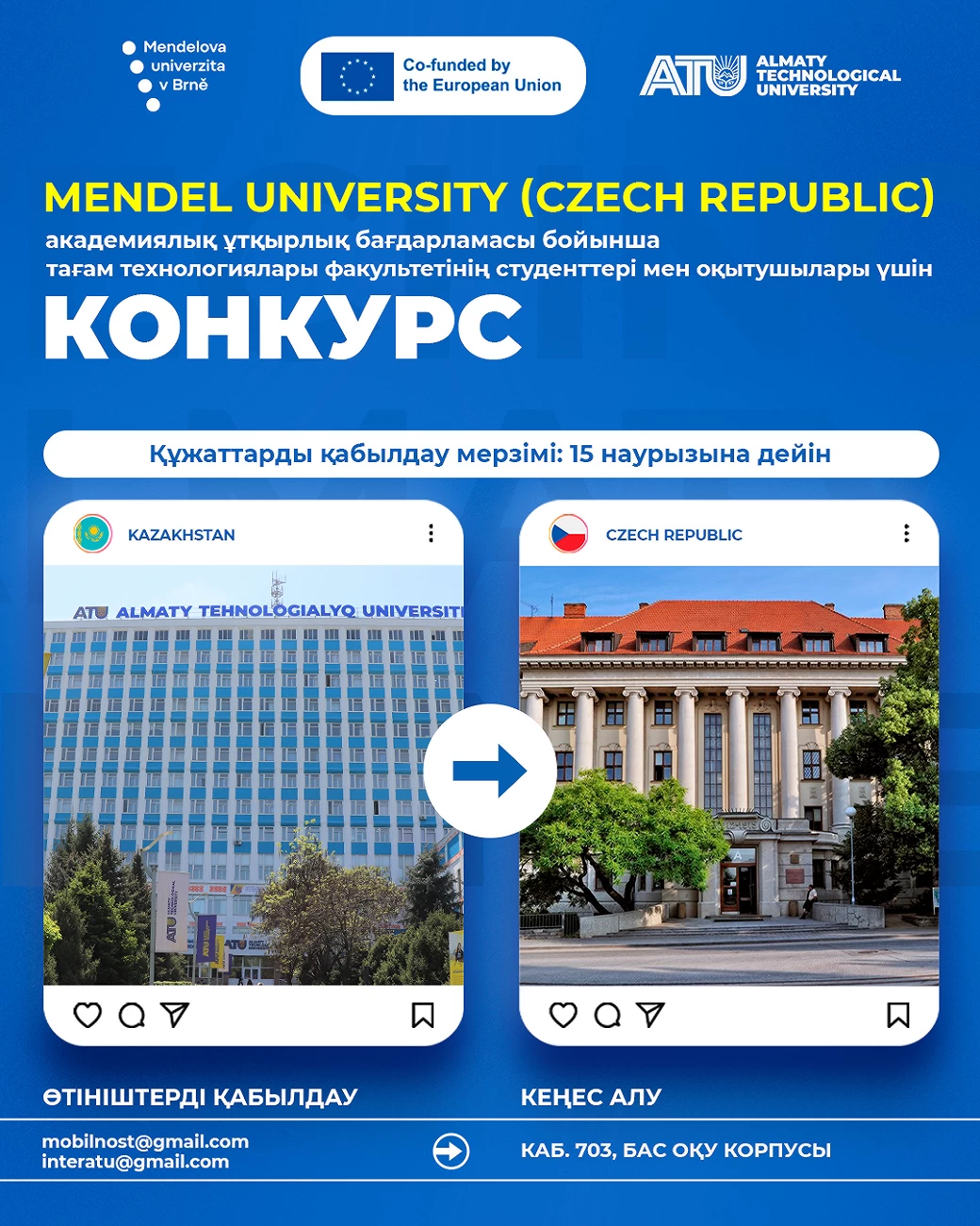 - Куда подавать: в Международный департамент mobilnost@gmail.com, interatu@gmail.com каб. 703, ГУК.