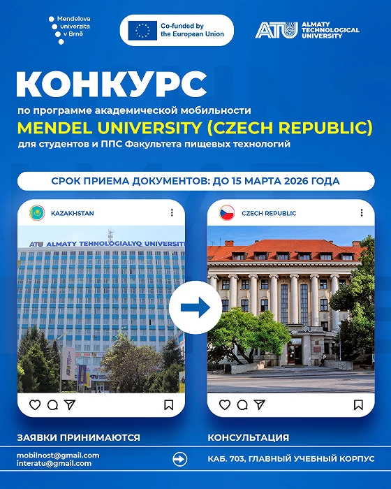 Международный департамент объявляет о начале приема заявок на участие в программе академической мобильности в Университет Менделя (Mendel University in Brno) на осенний семестр 2026-2027 учебного года по программе ERASMUS+ KA171.